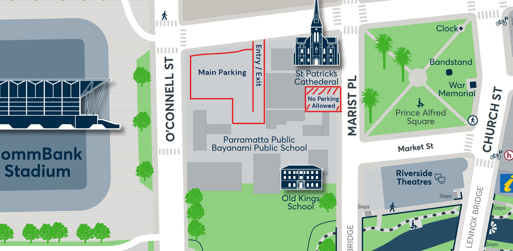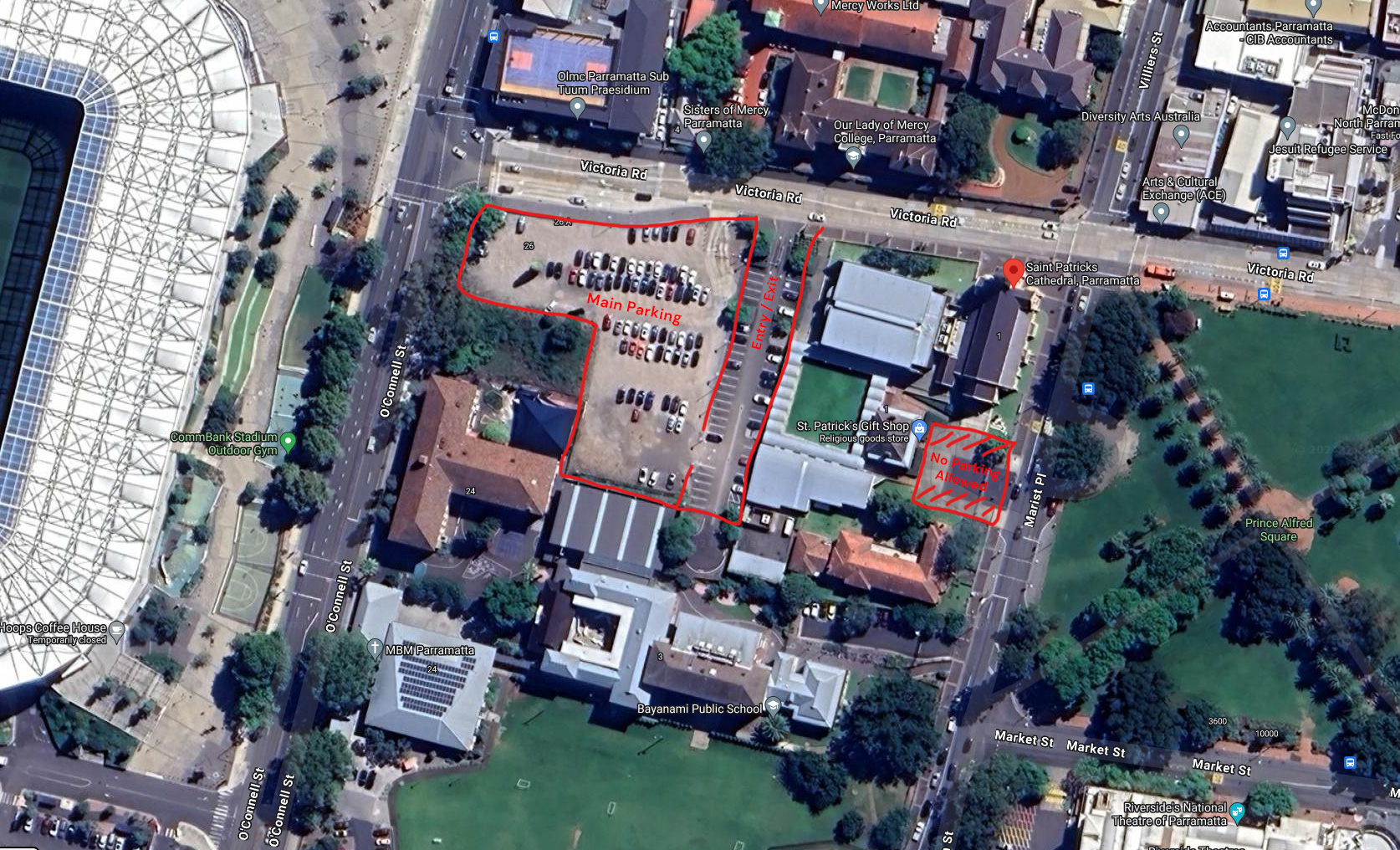 Please note that the main parking is at the back of the Cathedral entrance via Victoria Road. We ask that you please do not park in the front main entrance of the church as this spot is reserved for the bridal cars only and parking is generally a no parking zone.